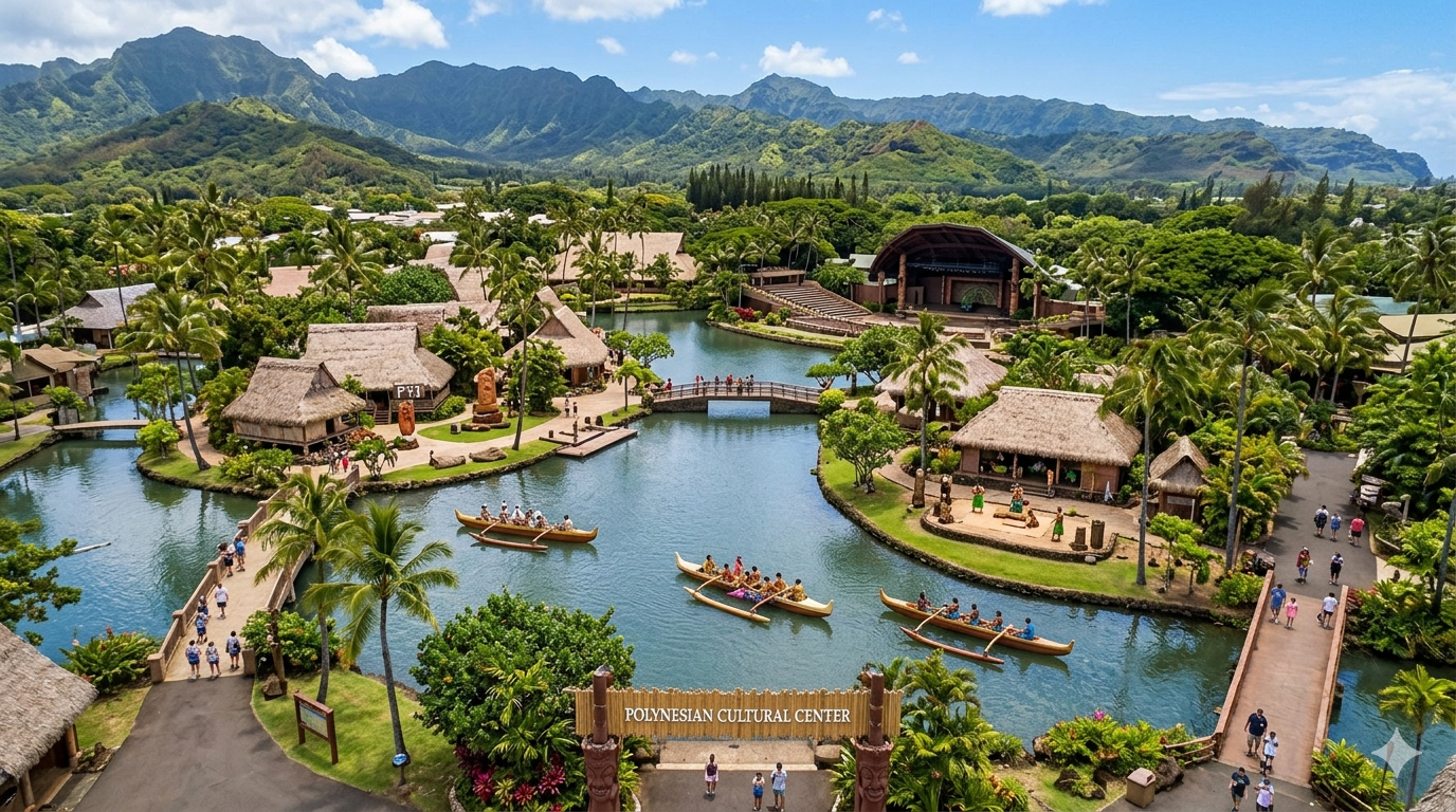 The Polynesian Cultural Center is in Laie, on Oahu’s North Shore.
